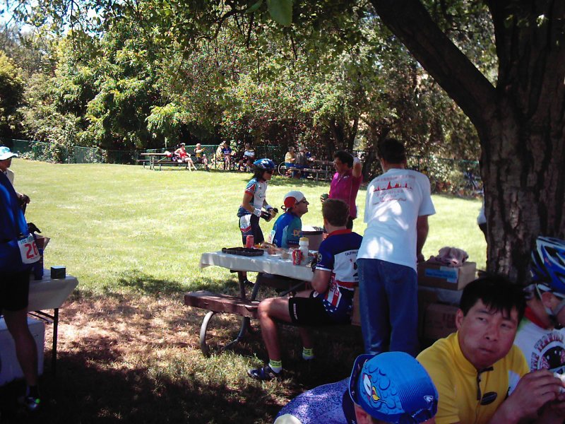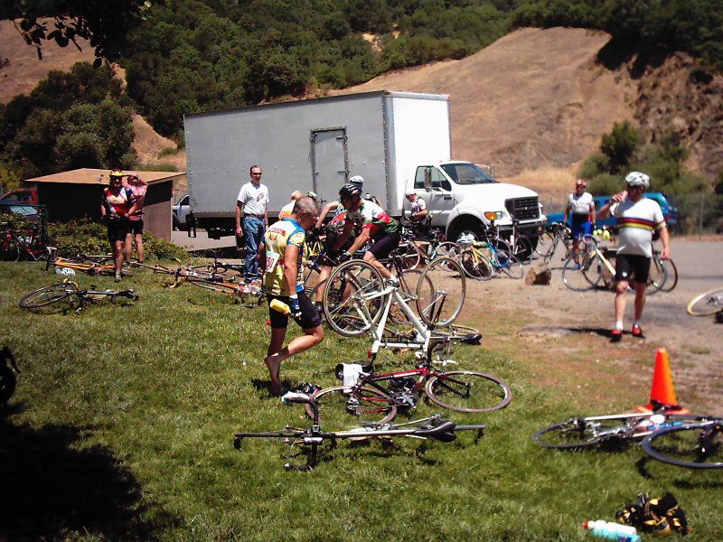 Our hosts, the Santa Rosa Cycling Club, once again outdid themselves. From the ice-cold water at every stop to the carefully prepared cups of m&ms at the last rest stop, everything about the support was top-notch. These folks know how to put on a great ride. Below, Campy Only's ride cam photos and videos from the ride. As always, if you would like a higher-res version of any photo, please email us: webmaster@campyonly.com Our riding partners this year were Bo Yule (who completed his first California Triple Crown on this day) and Mojo Cosgrove. Enjoy. (A warning that the video files are somewhat large; we recommend you either use a high-bandwidth connection or be prepared to wait while they load ...)