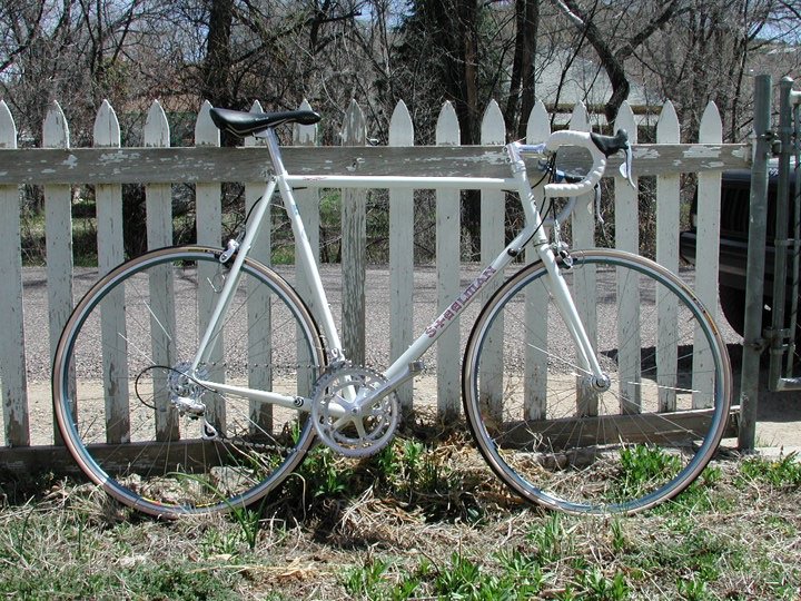 gruppo:Veloce 'Speed' In the process of assemblying the bike with the Veloce gruppo, few ideas arise as how to proceed with this road test. Appearances and performances are the two main areas, that the road test will cover. The former is more important in the beginning of the test, and the latter after some usage. When the gruppo arrived, a great deal of time was spend on opening the box and examining the content, and deciding where to start. Some aspects are anticipated while others are a total surprise. The first overall impressions are solid, detailed, elegant, rough, simple, weird, vintage, clean, functional, machined, and ergo. Ergo levers is the second item out of the box, and something is not pleasant. After some thoughts, the cause emerges. The grip is fabricated out of synthetic rubber(?), the pattern looks like leather, but one can see that it is not. Thus, there is an affected mood to its appearances. Assembly: The routings of the cables on the levers are easy to understand, and there were no problem installing both. Assembly: The front brake is clearly different than the rear. The length of the pivot bolts are different between the two calipers, and the