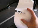 This is where you will spend most of your time--removing the soap solution you just sprayed on. It takes a long, long time. The benefit of the soap solution is that it keeps the film from "grabbing" and sticking immediately, allowing you to move the film around. On the negative side, the soap-slicked film moves around a lot. The piece on our top tube shifted around quite a bit--by the time we got all the soap out, it was out of alignment, but we figured only we would know, so we left it. As a test, we applied several smaller pieces to our bike's chainstays without the soap film, and got very good results.