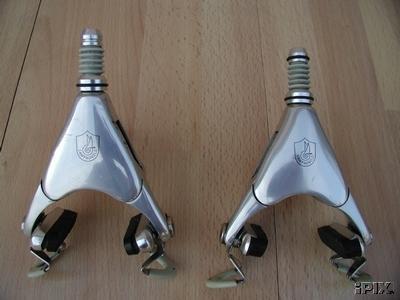 But . . . for some unknown reason, Campagnolo's engineers decided to use a 3.5mm screw in that spot. We dare you to try to find a 3.5mm allen key. We tried several local sources, including the largest metric tool house in Sacramento, and found nothing. A search on the internet was similarly fruitless. We even called up Park Tools, where the nice guy on the phone just chuckled when we told him what we were looking for. Nope, not even Park Tools makes (or ever made) a 3.5mm allen key. He advised taking a 19/64-inch allen key (which is easily available) and filing it down carefully until it fits. We did that, and it works, but we could hear the distant curses of those mechanics, scrounging around for a weird allen key . . . Updated 1-17-02--Several readers have pointed out that Campagnolo provided a 3.5mm allen key (engraved "Campagnolo") with the brakes. In later versions, the clamping bolt was changed to a 4mm, and the special key was no longer needed. Thanks to webmaster@campyonly.com of Atlanta (who has a few extra 3.5's laying around, for volunteering to send one for the Campy Only tool kit. The next step in setup-aligning the brake shows--is made easier by a marvelously complex set of brake shoe holders. The Delta brakeset presaged the much simpler modern brake shoe setup (now made with a ball-and-socket adjustment) by allowing a combination of rotation to match the rim shape with a toe-in adjustment made by two tiny allen screws. These screws (one each in front of and behind the mounting bolt) push on a plate that sits behind the rubber brake shoes--adjust the screw in, and that part of the brake shoe moves toward the rim. It's a complex system with too many tiny parts, but it works. If you like, you can at this point also take advantage of a unique feature of the Deltas--the ability to move the entire caliper assembly up and down on the pivot bolt. If your frame has a little extra tire clearance, for example, you can move the brake body closer to the tire. This keeps the effective length of the brake arm as low as possible, helping make the brakes that much more solid. And a final word about adjustment and setup . . . Delta brakes like to be run loose. The mechanical advantage of the mechanism increases as the brake arms move more, so it's best to start loose. We run our Deltas with the brake shoes about 3mm from the rims--about twice the distance of a dual-pivot brakeset. It took some trial and error to figure this out, but the brakes work much better this way. And how do they work? We would put their performance about midway between old Super Record/Nuovo Record brakes and modern dual-pivots (or even Differential brakes). They work, and they will stop you, but not with the sheer stopping power of dual pivots. We're a little nervous using them on steep, technical descents, but the style points gained by having them on the bike outweighs those concerns. While pure stopping power is somewhat lower, modulation (the ability to control braking power) is perhaps better. The Deltas' stopping power is more progressive, starting light and getting stronger as the brake arms move toward the rim. Reader webmaster@campyonly.com flatly calls Deltas "the best brakes for pack riding any one has ever made." Why don't they work better? As noted above, the mechanical insides give these brakes a theoretical advantage. Perhaps it's the relatively small brake pads (smaller than SR/NR) that's to blame. One reader tells us that he uses modern, larger brake pads and gets improved performance. A word about weight--these brakes have it. Compared to a set of Record Differential brakes, Croce d'Aune Deltas are real anchors. Our digital scale says the Delta calipers weigh a full 18 ounces (510 grams), about 7.1 ounces heavier than current Record brakes. The Record version of the Delta was lighter--reader webmaster@campyonly.com of South Africa weighed his at 14.8 ounces (415 grams), not that much more than modern dual-pivot brakes. Says Phil, "I have been riding them for the last 10 years and they are fantastic - yes a bit heavy on the hands but you get used to that. I would not change them for anything." Once again, concentrate on the style points and forget about how heavy these things are. Says reader webmaster@campyonly.com, "I still use my Delta brakes (I have 3 pairs!) with my otherwise full 2001 Record setup. I have no plans to change that. Its the Deltas that get all the attention from other cyclists I meet." Reader Stuart Laing offers these thoughts on Deltas: Set up: I had the aero brake levers with the 3mm adjuster in the center for the longest time. These worked very well with the delta's. When the Synth brake shoes came out, I put them in both my Delta and Cobalto brakes. They really helped out a great deal. Also, you have to set the Delta brakes slightly slack to allow the arms to pull in. These were slacker than my delta's. I then got some of the first ergopowers in the country and got rid of the aero levers and used the ergo's with Delta brakes up until a few years ago when I sold the bike. Using Synth brake shoes worked very well. Never a problem. You have to keep the cable inside the brake short, this is hard to do with some cable cutters. How I fixed this problem was to take the wheel out after I hooked them up and pulled the brake all the way in. The 4mm screw was a bit hard to get used to tightening but you use a 10mm spanner against the brake and that is solved. Have you used Delta brakes? Email us with your thoughts: webmaster@campyonly.com