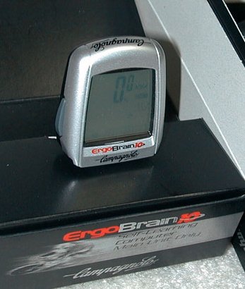 about installing and beginning to road test Campagnolo's first excursion into the realm of cycling electronics. Here, then, are our test results. Installation Before you start installing your ErgoBrain, be sure to clear a couple of hours from your schedule. Unless you're unusually fast, it will take you a while to get all of the various bits and pieces installed correctly and all the trim back together. That's partly because of the number of parts, and partly because installing the shift sensors requires that you untape your handlebars, which for me usually means a half an hour to get the new tape on just right. A few notes about installation: Follow the directions, and you'll do just fine. I found the English installation instructions fairly clear (about on par with Campagnolo's so-so translations from Italian into English). Anybody with comments on the other languages, please let me know.
